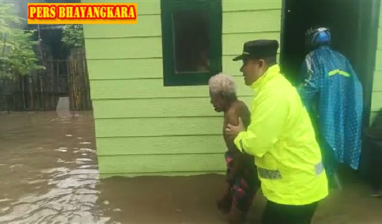 Tim SAR Polsek Banyuwangi yang di komando Kapolsek AKP Kusmin merespon cepat bencana banjir tersebut dengan melakukan evakuasi korban.