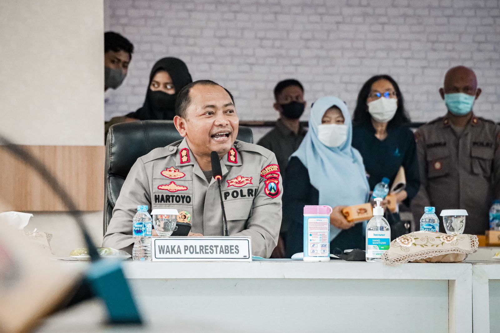 Wakapolrestabes Surabaya, AKBP Hartoyo memimpin rapat koordinasi dengan didampingi langsung oleh Kepala Dinas Kesehatan Kota Surabaya, drg. Febria Rachmanita.