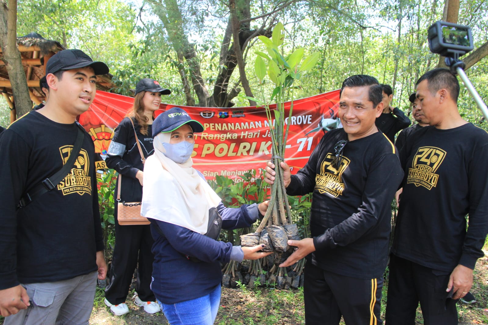 Kompol Muchamad Fakih menyampaikan bahwa terdapat 100 bibit pohon mangrove berjenis Bruguiera Gymnorrhiza (Putut) yang ditanam dari jumlah total 300 bibit yang ada.