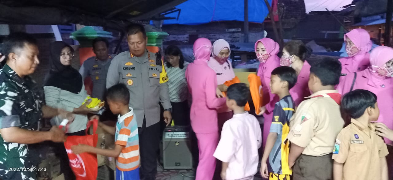 SIDOARJO – persbhayangkara.id JAWA Polresta Sidoarjo bersama Bhayangkari Cabang Kota Sidoarjo dan Forkopimka Buduran, Jumat (28/10/2022) sore, membagikan sebanyak 300 paket sembako, snack dan perlengkapan sekolah di lokasi bencana puting beliung, Dusun Mlaten, Sidokepung, Buduran, Sidoarjo.
