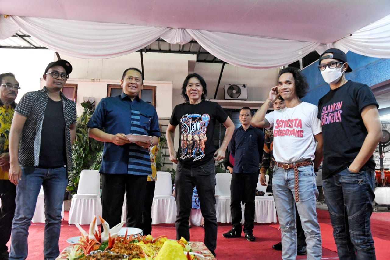 Ketua MPR RI sekaligus Wakil Ketua Umum Partai Golkar Bambang Soesatyo menghadiri syukuran persiapan penyelenggaraan Konser HUT-39 Slank, ‘Beautiful Smile (BS) Indonesia Tour’, di Markas Slank Potlot, Pasar Minggu, Jakarta. Selama 39 berkiprah di blantika musik, Slank tidak hanya telah meramaikan pasar musik Tanah Air, melainkan juga meramaikan pasar musik internasional. Tercatat berbagai konser internasional pernah mereka selenggarakan, antara lain di Amerika, Jepang, Korea Selatan, Thailand, Filipina, serta berbagai negara Eropa seperti Belanda (Amsterdam), Inggris (London), dan Jerman (Hamburg dan Bonn).