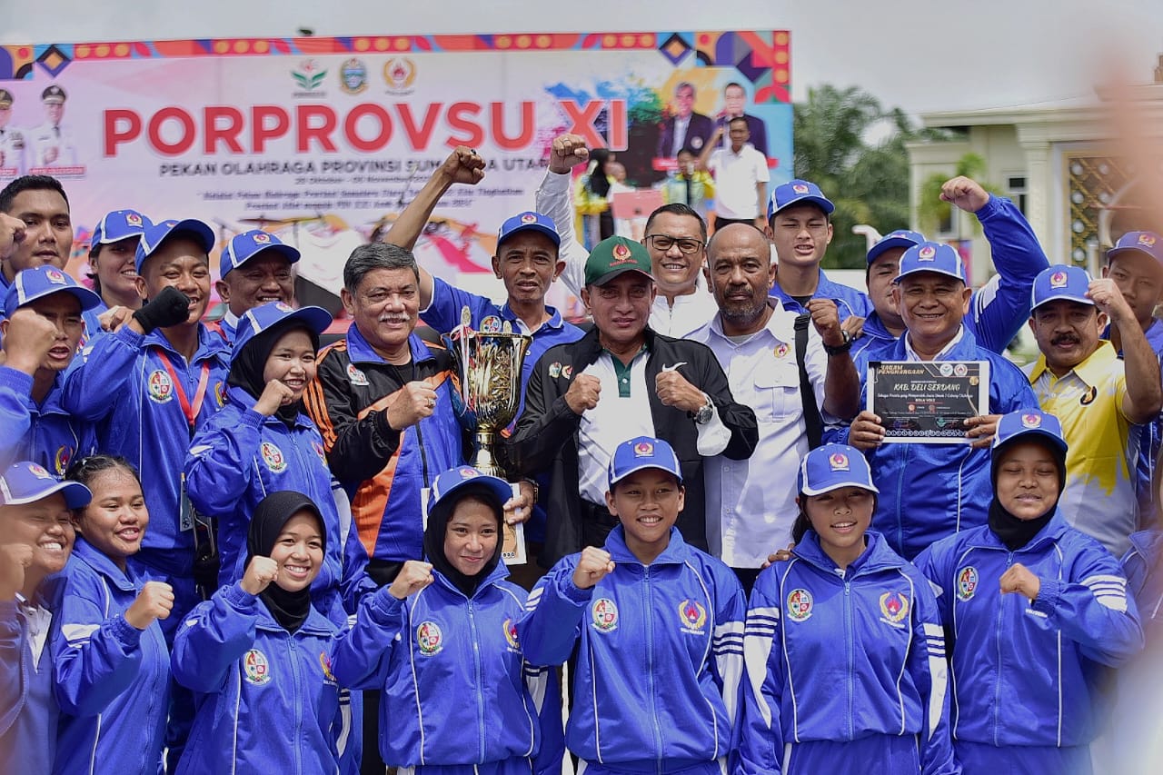 HMA Yusuf Siregar Terima Tropi Juara Umum II dari Gubsu untuk Kontingen Deli Serdang di Porprovsu 2022