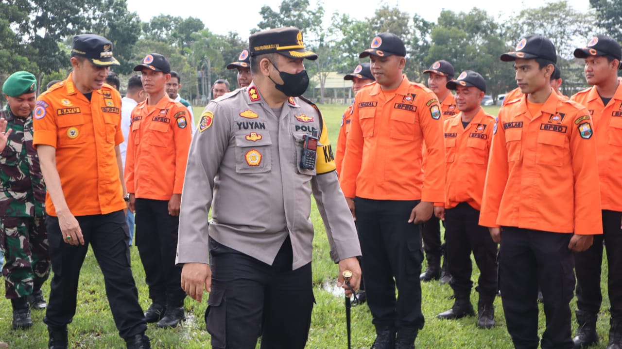 Kapolres Muaro Jambi bersama Pj Bupati Muaro Jambi Apel Kesiapsiagaan Bencana Hidrometerologi Tahun 2022 di lapangan kantor bupati Muaro Jambi bukit cinto kenang ,Rabu 09/11/22
