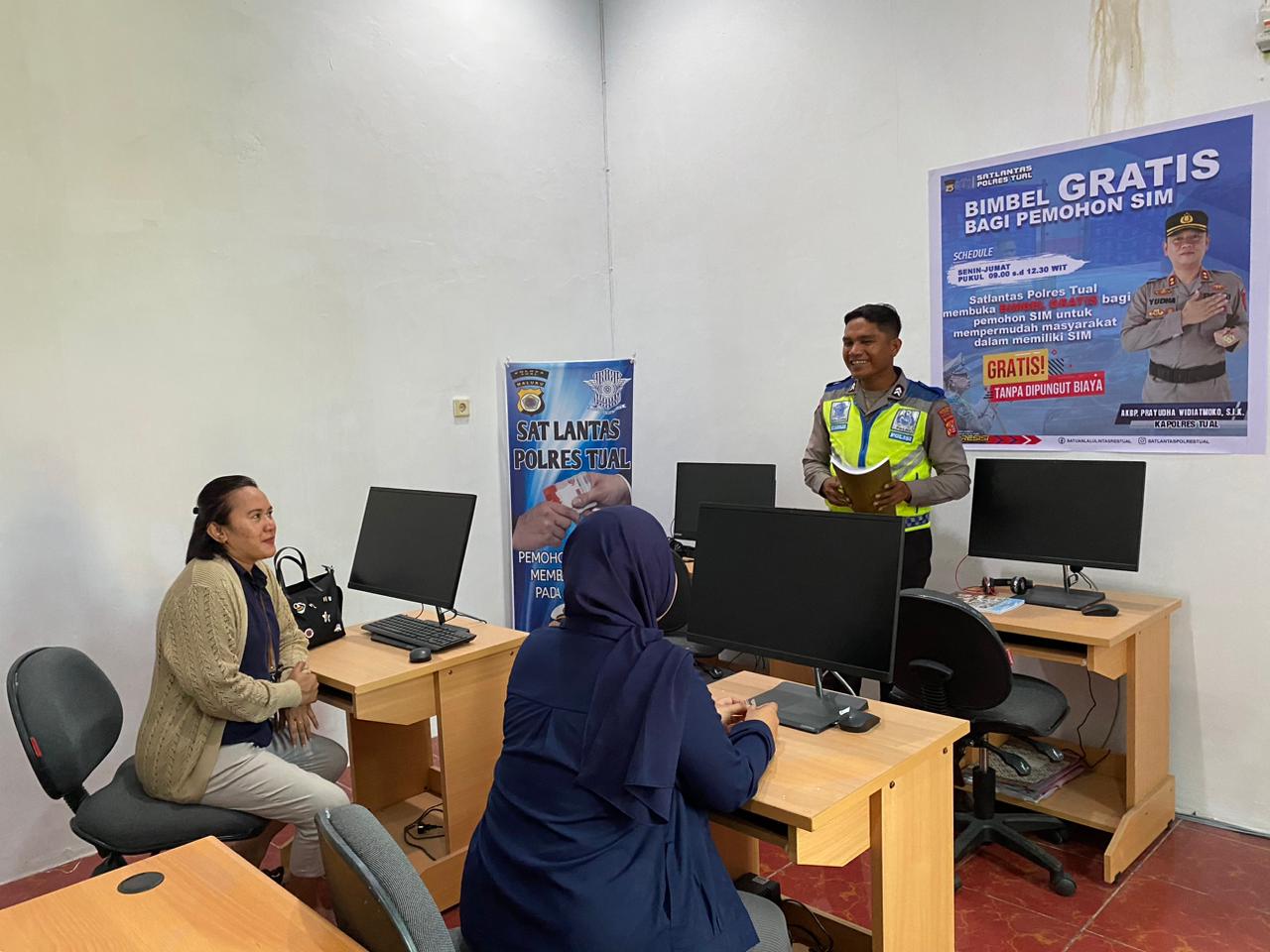 Satuan Lantas Polres Tual memberikan bimbingan belajar (Bimbel) gratis bagi calon pemohon Surat Izin Mengemudi (SIM) dalam wilayah hukum Polres Tual.