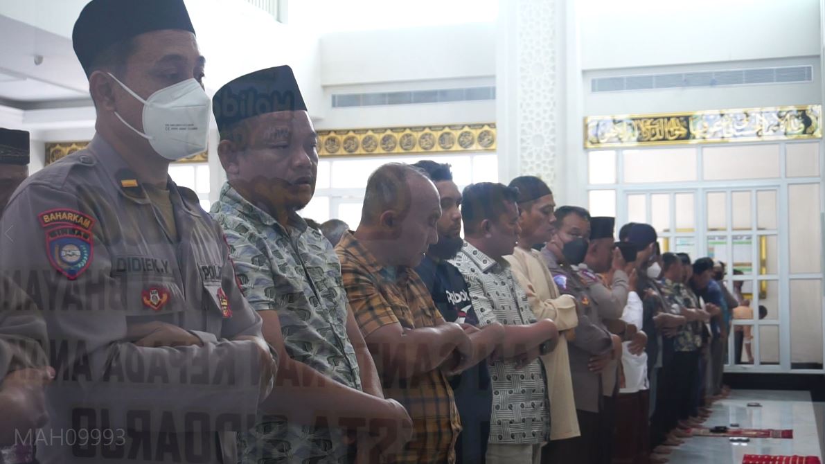Usai melaksanakan Shalat Jumat di Masjid Al Ikhlas Polresta Sidoarjo, Jumat (25/11/2022), jamaah baik dari pejabat utama Polresta Sidoarjo, anggota, ASN dan masyarakat umum melaksanakan Shalat Ghaib berjamaah untuk korban gempa Cianjur.