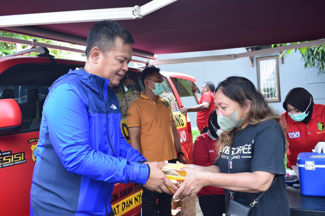 Saat menjumpai warga sekitar yang kurang mampu, Kapolresta Sidoarjo memberikan bantuan sosial berupa paket sembako. “Ada sekitar 200 paket sembako yang disediakan Polresta Sidoarjo untuk warga sekitar pasar, terutama warga kurang mampu,” kata Kombes Pol. Kusumo Wahyu Bintoro.
