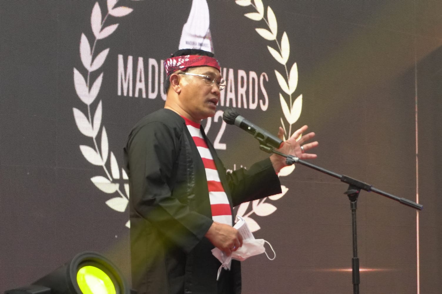 Plt Kadis Kominfo Jatim Hudiyono saat memberikan sambutan pada acara Madura Award 2022, di Pamekasan