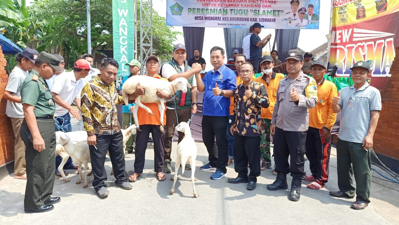 Demi menciptakan perekonomian di bumi Kabupaten Sidoarjo melaju pesat dan berstandar, anggota DPRD kabupaten Sidoarjo tak mau tinggal diam dalam memantau dan mengawasi warga masyarakat se-kabupaten Sidoarjo, kecerdasan Pemdes Wangkal beserta staf pamong desa selalu berkolaborasi dengan instansi pemerintah kabupaten Sidoarjo yang baik, hari ini Minggu tanggal 18/12/22 bersamaan giat peresmian tugu Slamet pemdes Wangkal juga berlangsung penyerahan bibit kambing ternak kepada 25 para petani pedesaan Wangkal.