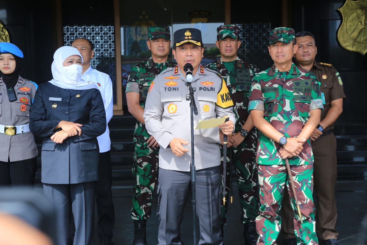 Forkopimda Jawa Timur gelar apel Operasi Lilin Semeru 2022, dalam rangka menyambut Natal dan tahun baru (Nataru) 2023, di lapangan Mapolda Jatim, pada Kamis (22/12/2022).