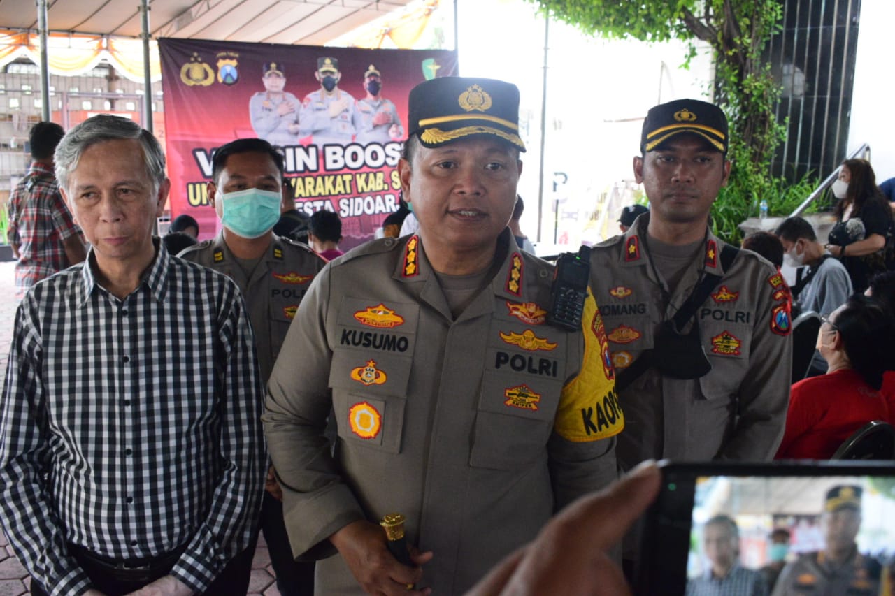 “Covid-19 masih ada, di saat ibadah Hari Raya Natal 2022, kami berharap jangan lengah. Tetap patuhi protokol kesehatan dan bagi yang belum vaksin dosis kedua maupun ketiga silahkan melakukan vaksinasi di layanan yang telah kami sediakan,” ujar Kapolresta Sidoarjo Kombes Pol. Kusumo Wahyu Bintoro.