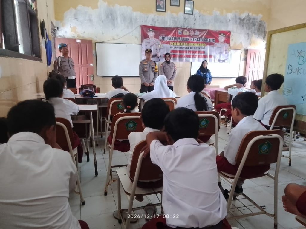 Polsek Buduran Polresta Sidoarjo bersama stake holder terkait melaksanakan program prioritas pemerintah pusat, yakni pembagian makan siang bergizi bagi pelajar di sekolah wilayah terpencil. Yakni Dusun Kepetingan, Desa Sawohan, Kecamatan Buduran, Kabupaten Sidoarjo.