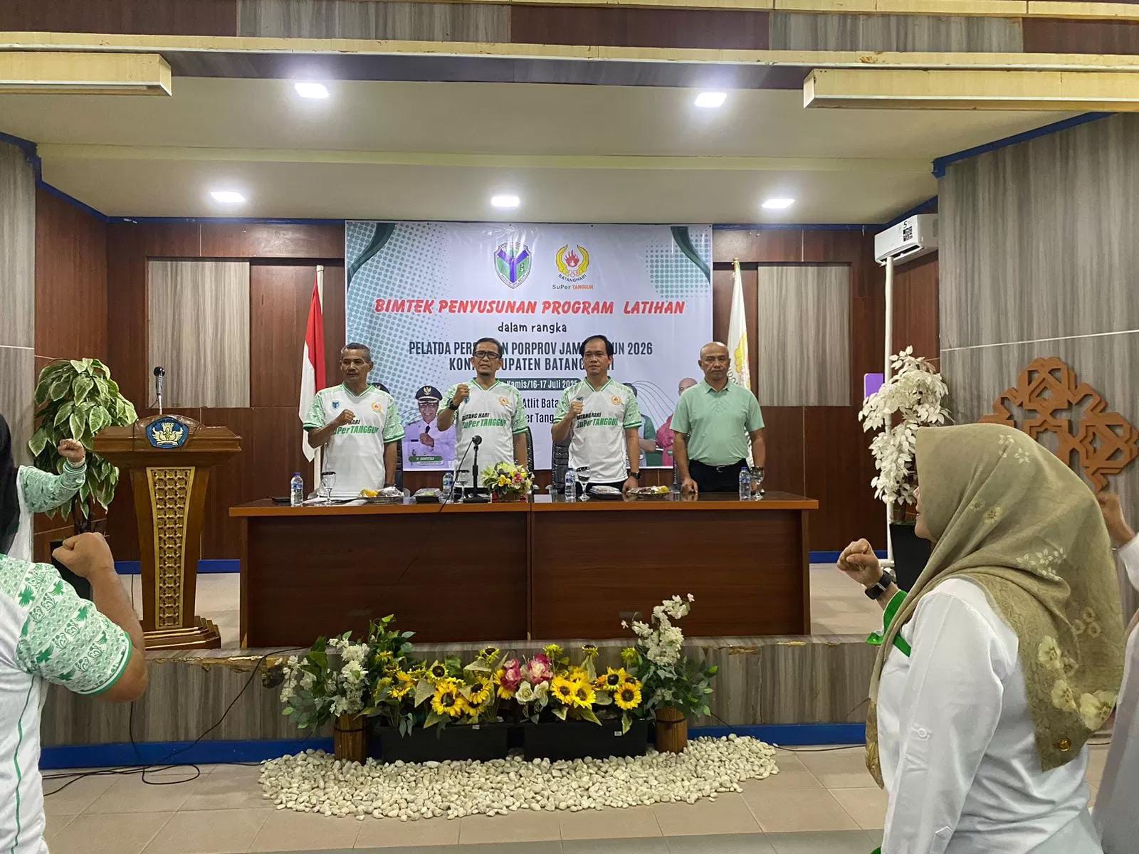 Dalam rangka mempersiapkan program pelatda menuju Pekan Olahraga Provinsi (Porprov) Jambi tahun 2026, Komite Olahraga Nasional Indonesia (KONI) Kabupaten Batang Hari menggelar Bimbingan Teknis (Bimtek) Penyusunan Program Pelatihan Atlet di Gedung BPLS Batang Hari.