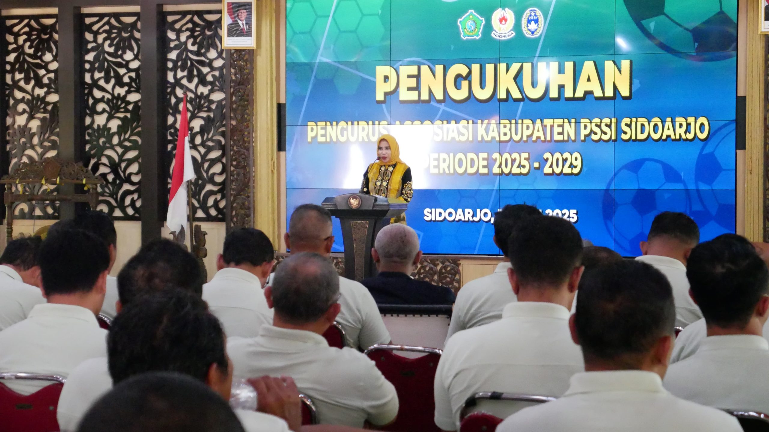 Wakil Bupati Sidoarjo, Mimik Idayana, menghadiri acara pengukuhan pengurus Asosiasi Kabupaten (Askab) Persatuan Sepak bola Seluruh Indonesia (PSSI) Sidoarjo masa bakti 2025-2029 di Pendopo Delta Wibawa, Kamis (31/7/2025).