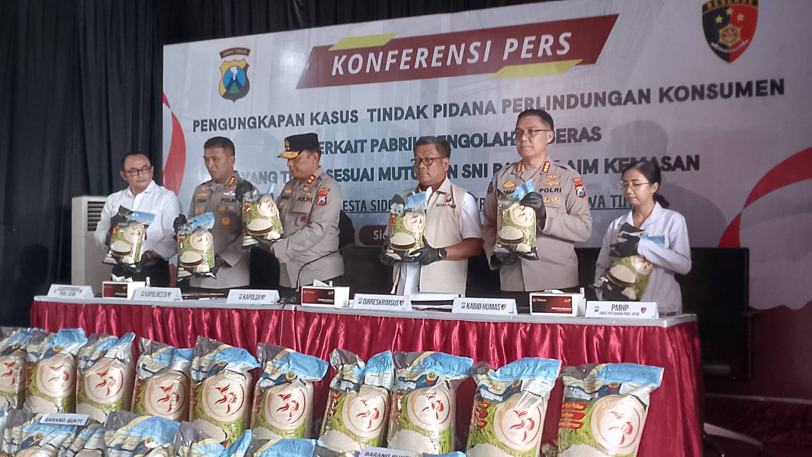 “Atas dasar tersebut MLH beserta barang bukti diamankan ke Polresta Sidoarjo untuk proses penyidikan lebih lanjut. Kami juga melibatkan saksi ahli dari Badan Standarisasi Nasional, ahli dari perlindungan konsumen Disperindag Jatim dan uji laboratorium terkait standarisasi mutu beras premium dengan pengambilan sampel beras SPG,” ujar Kapolda Jatim Irjen. Pol. Nanang Avianto.