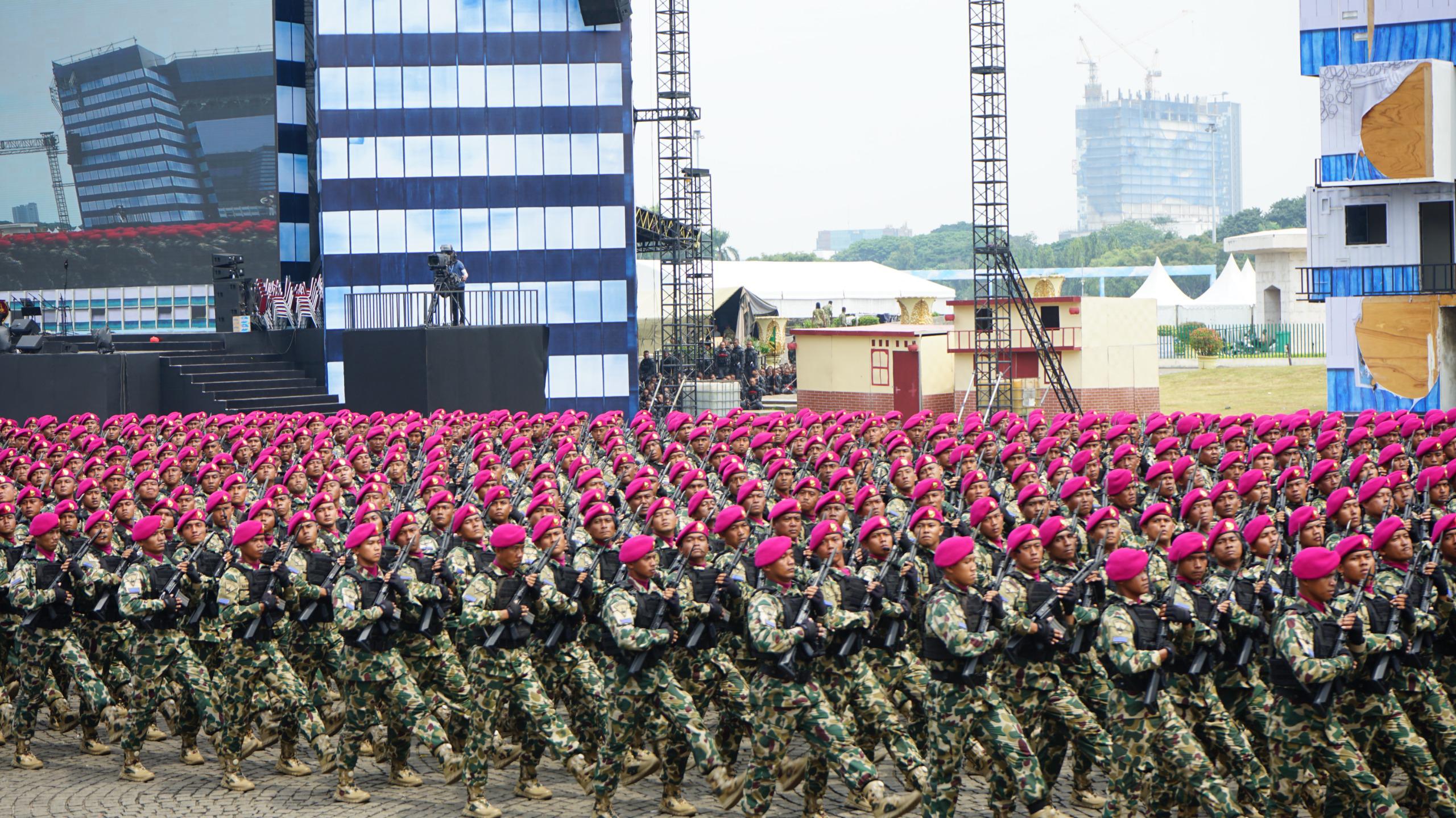 Dengan semangat juang yang tinggi dan penuh kebanggaan, Prajurit Batalyon Infanteri 2 Marinir (Yonif 2 Mar) tampil memukau dalam Acara Puncak Perayaan Hari Ulang Tahun Tentara Nasional Indonesia (HUT TNI) ke-80 yang berlangsung megah dan khidmat di lapangan silang monas, Jakarta Pusat (05/10/2025).