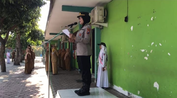 Upaya Polresta Sidoarjo dalam mencegah kenakalan remaja terus digencarkan melalui kegiatan pembinaan di lingkungan sekolah. Senin (13/10/2025), Kanit PPA Satreskrim Polresta Sidoarjo Iptu Utun Utami bertindak sebagai pembina upacara bendera di SMPN 1 Wonoayu.