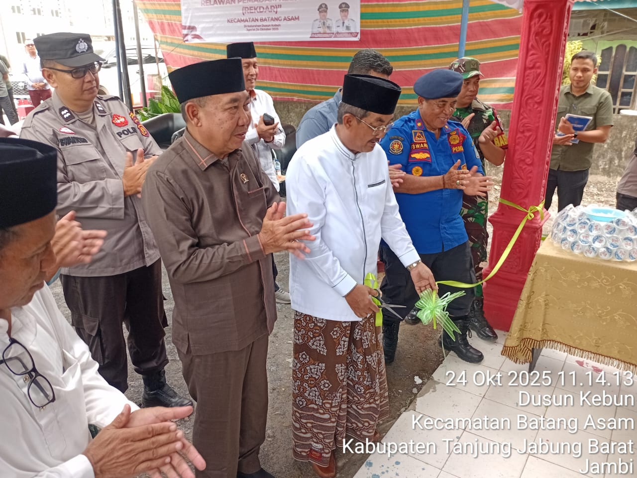 Bupati Tanjung Jabung Barat,Drs.H Anwar Sadat, M.Ag,bersama Wakil Bupati Dr.H.Katamso SA.S.E,ME.,meresmikan pos pemadam kebakaran (DAMKAR)di kelurahan Dusun Kebun,Kecamatan Batang Asam,Jum’at 24/10/2025.