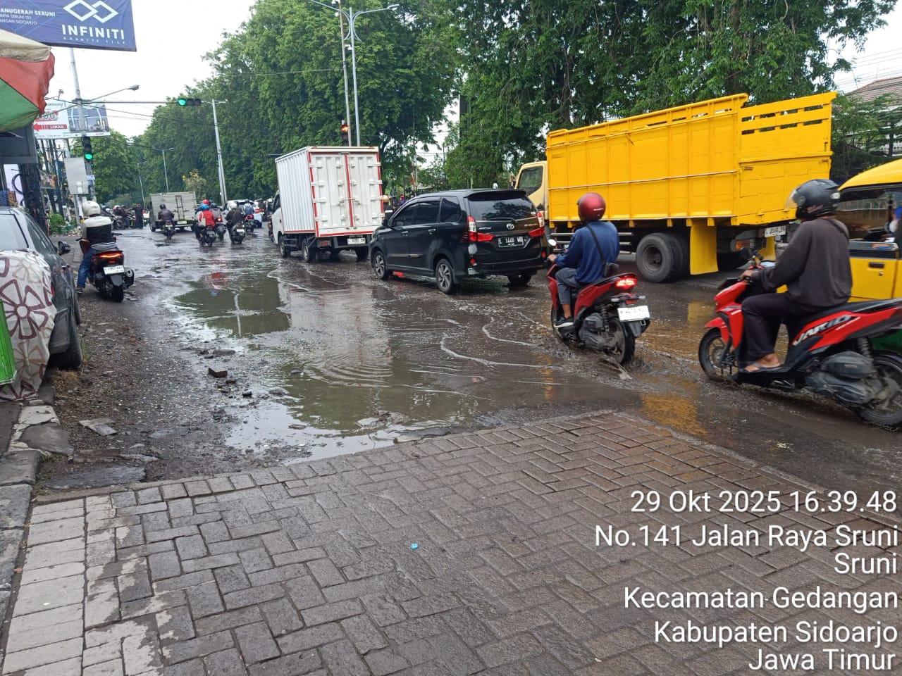 Setiap kali hujan turun deras, kawasan depan Indomaret dan toko Keramik Infinity di jalan raya Sruni, Kecamatan Gedangan, selalu tergenang air. Kondisi ini dikeluhkan warga dan pengguna jalan karena menyebabkan arus lalu lintas tersendat serta mengganggu aktivitas masyarakat sekitar.