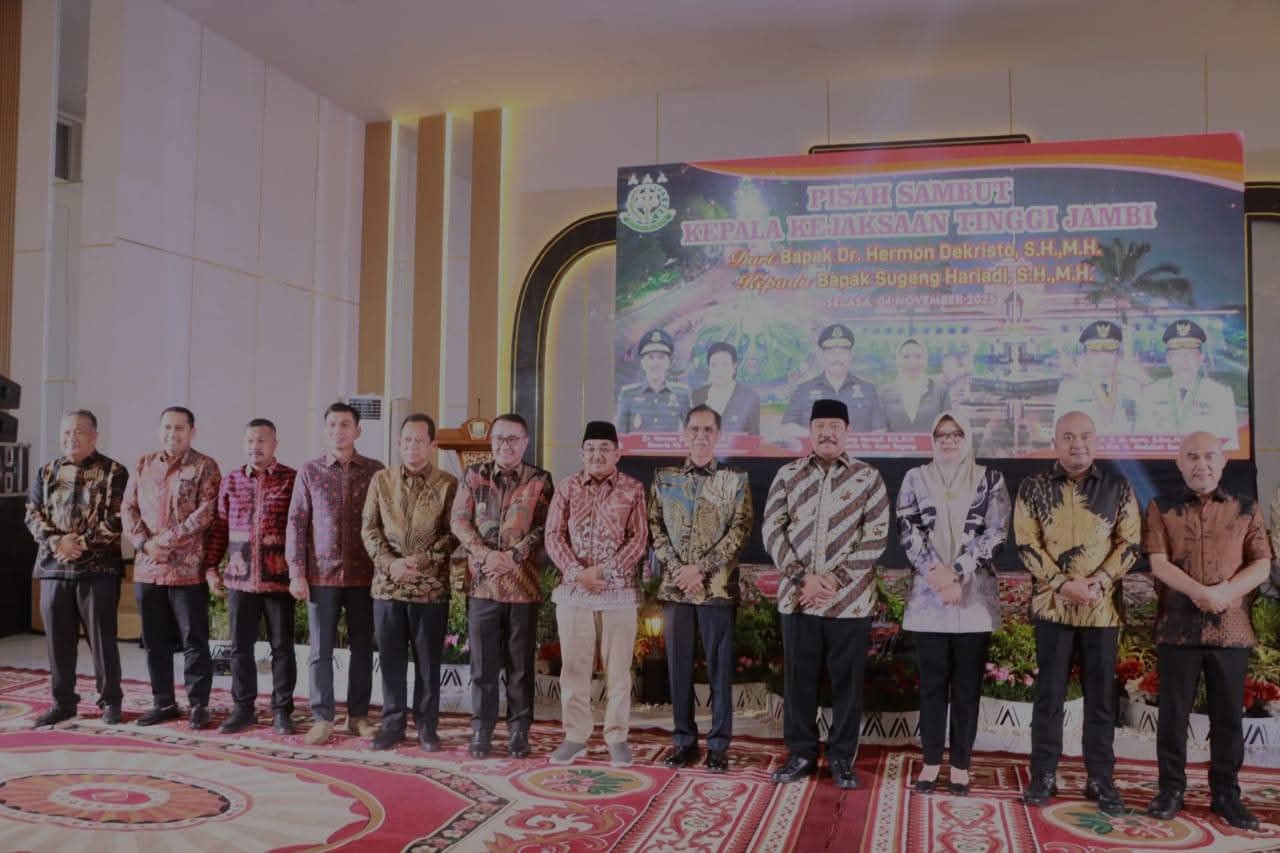 Masa bhakti Kepala Kejaksaan Tinggi (Kajati) Jambi, Dr. Hermon Dekristo, S.H., M.H., resmi berakhir dan digantikan oleh Sugeng Hariadi, S.H., M.H.. Serah terima jabatan berlangsung di Gedung Sentra Diklat Ballroom Prof. Dr. ST. Burhanuddin Kejati Jambi, Selasa malam (04/11/25).