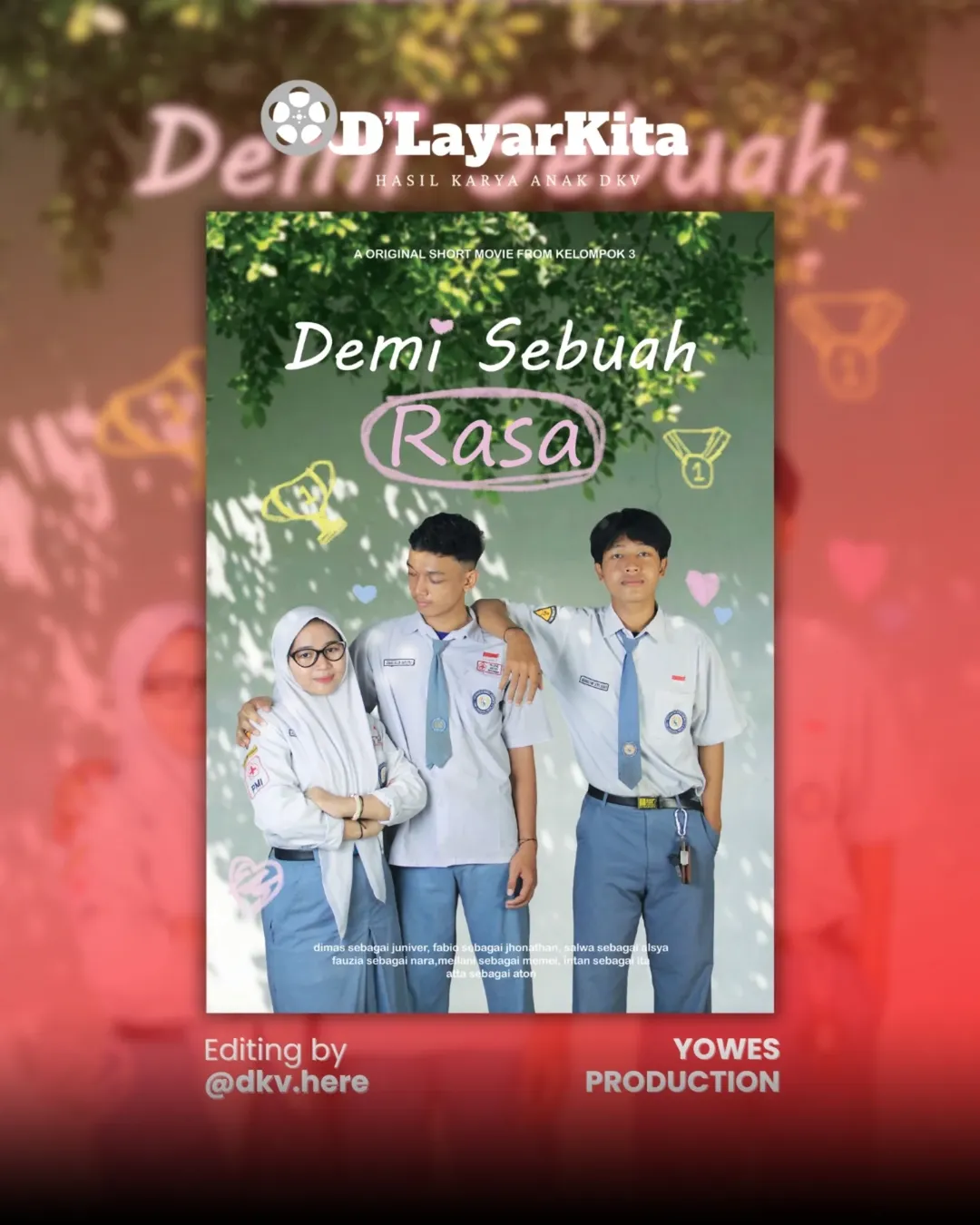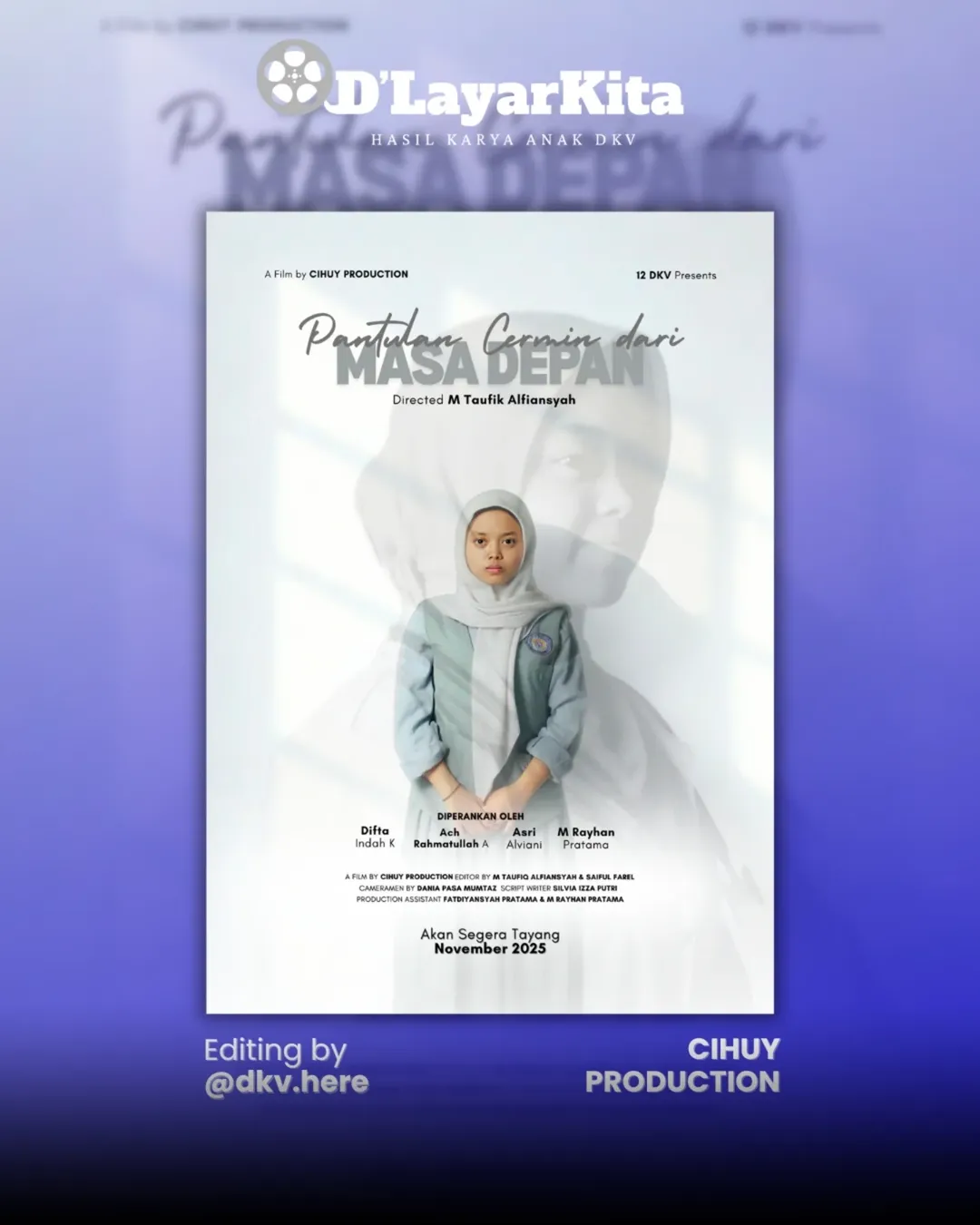 Seluruh rangkaian kegiatan—mulai dari produksi film, penyuntingan, desain poster, trailer, dekorasi ruangan, hingga pengelolaan acara—dikerjakan sendiri oleh siswa-siswi kelas XII DKV. Dengan kerja sama dan perencanaan yang solid, mereka membentuk panitia lengkap layaknya tim event organizer profesional. Tidak hanya itu, sesi meet & greet setelah penayangan turut menjadi daya tarik dan membuat acara terasa lebih hidup.