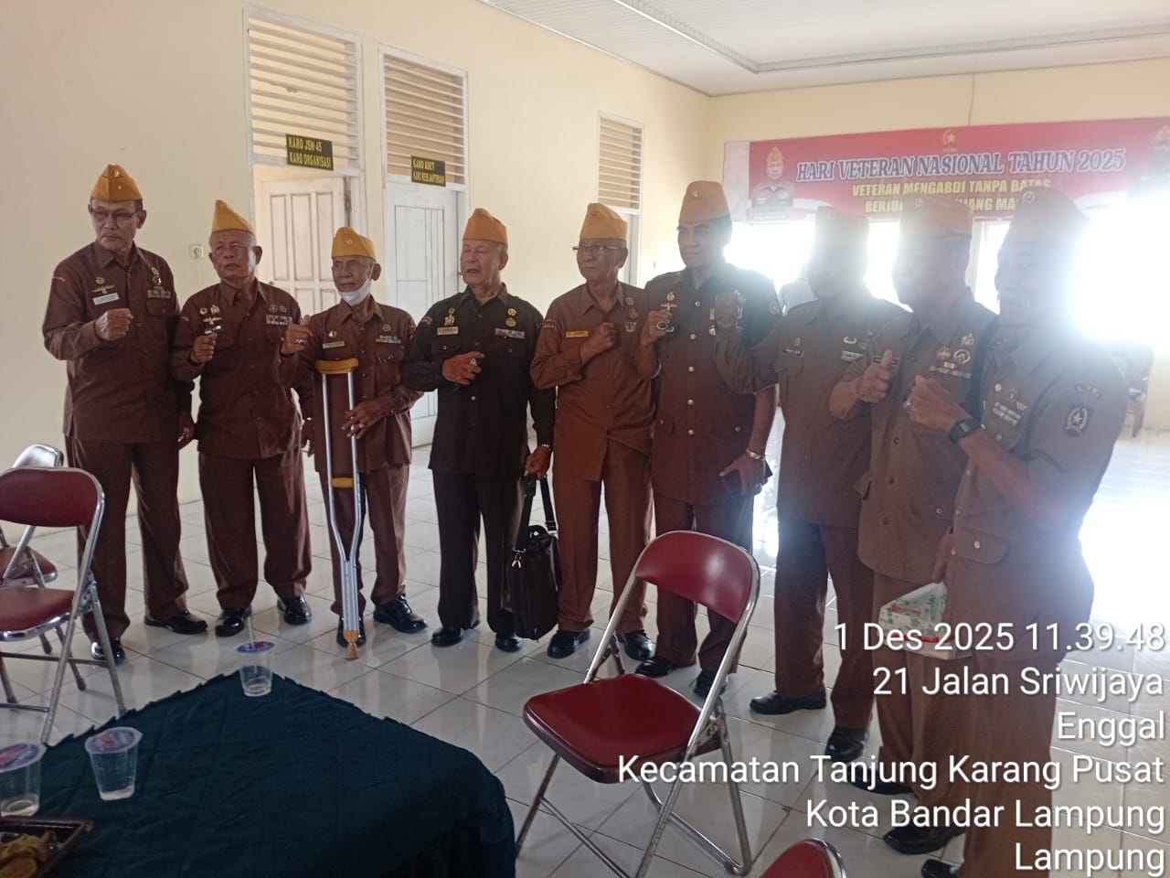Dalam Rangka menyambut Hari Ulang Tahun Veteran yang ke 69 ketua Legiun Veteran Provinsi Lampung H.Subardi beserta Pimpinan DPC yang mengadakan rapat kerja di kantor DPD LVRI Lampung Senin 01/12/2025.
