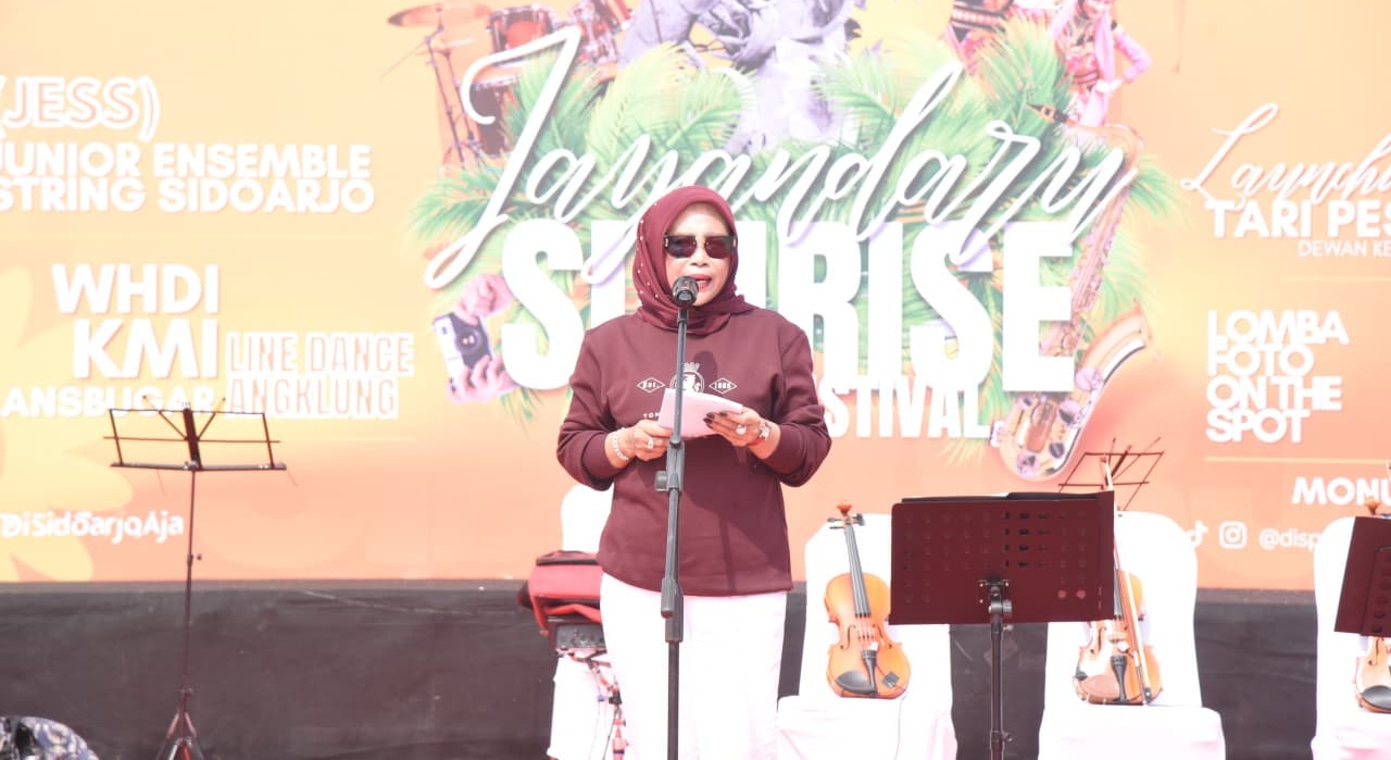 Dalam sambutannya, Wakil Bupati Sidoarjo Hj. Mimik Idayana menegaskan bahwa penyelenggaraan Jayandaru Sunrise Jazz Festival menjadi bentuk nyata semangat pemerintah dalam memperkuat identitas budaya serta menggairahkan sektor pariwisata daerah.