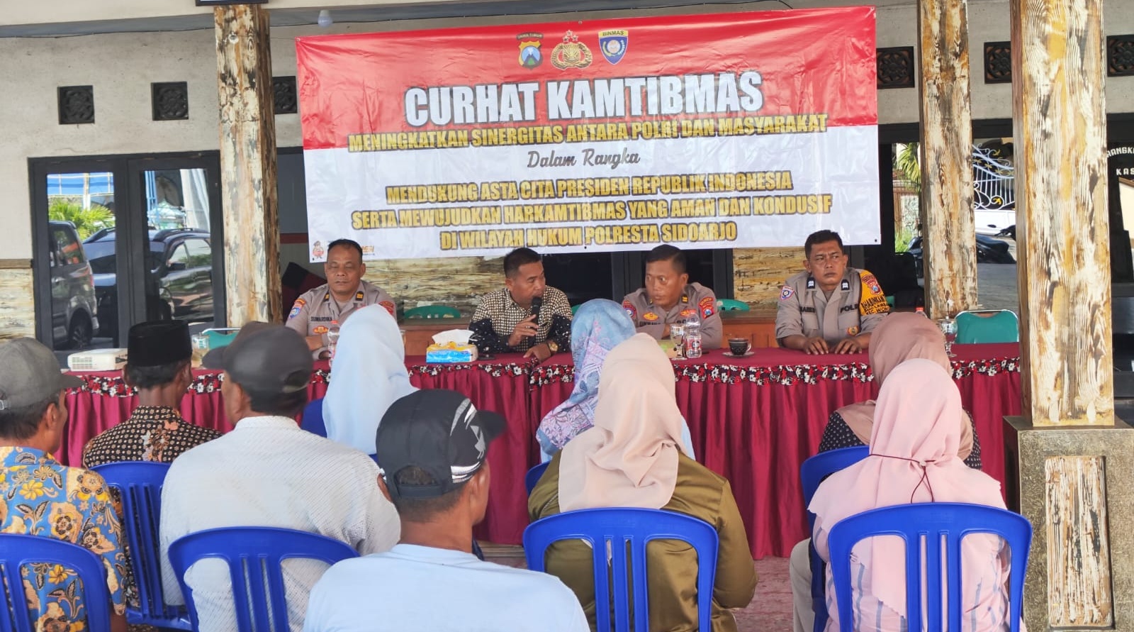 Polresta Sidoarjo terus memperkuat sinergitas dengan masyarakat melalui kegiatan Curhat Kamtibmas yang digelar di Balai Desa Lambangan, Kecamatan Wonoayu, Kabupaten Sidoarjo, Kamis (16/4/2026).