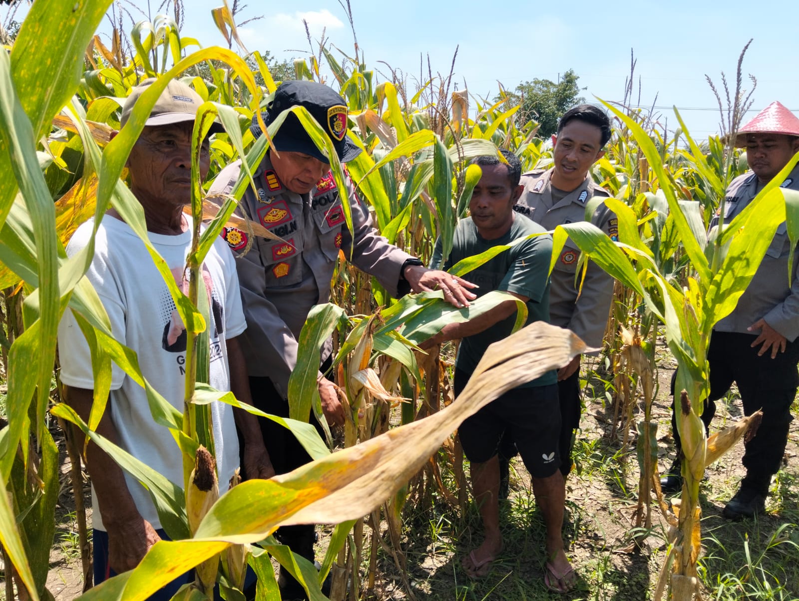 Guna mendukung program ketahanan pangan, anggota Polsek Prambon Polresta Sidoarjo melaksanakan kegiatan pengecekan lahan jagung di Desa Prambon, Kecamatan Prambon, Kabupaten Sidoarjo, pada Selasa (21/4/2026).