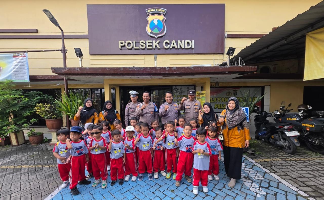 Dekatkan dinas kepolisian dengan masyarakat sejak usia dini terus dilakukan. Salah satunya dilakukan Polsek Candi Polresta Sidoarjo melalui program “Polisi Sahabat Anak” yang digelar pada Rabu (22/4/2026), menerima kunjungan edukatif dari anak-anak PAUD Pelita Bunda, Desa Bligo, Kecamatan Candi.