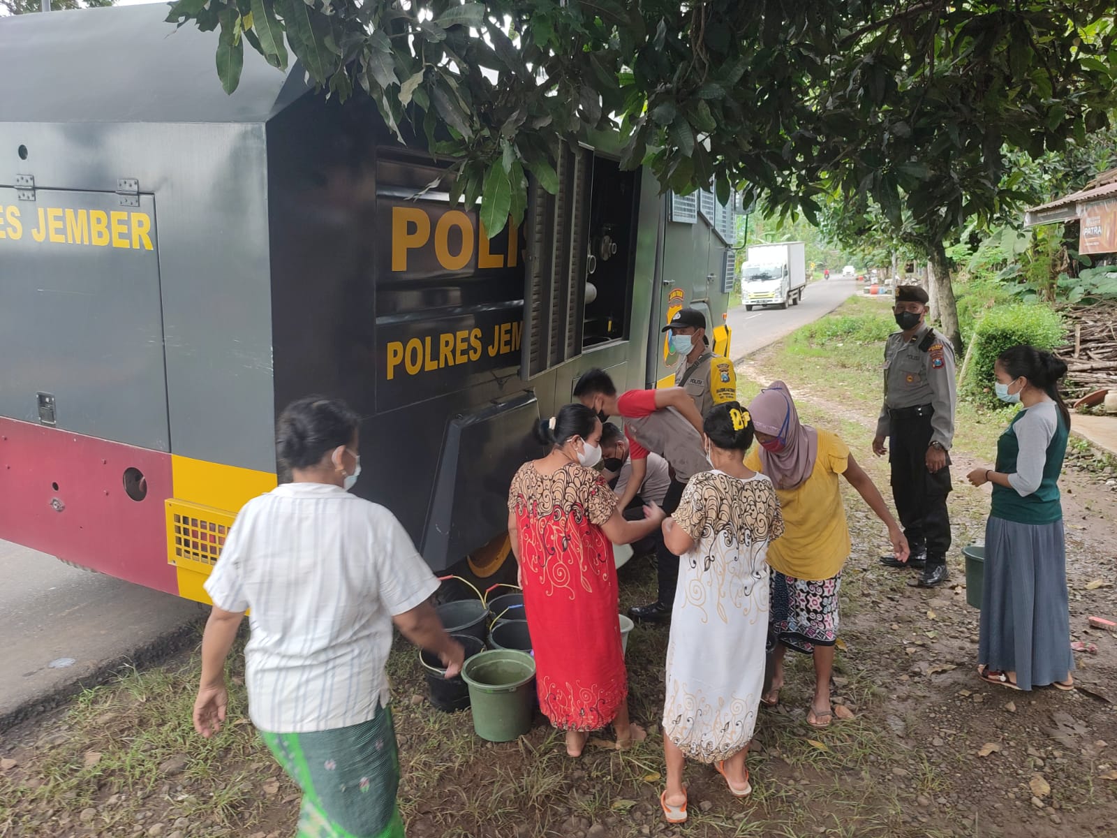 “Salah satu kepedulian yang nyata adalah mobil tangki polisi ini. Kami sangat terbantu dalam kebutuhan air bersih. Yang mengharukan juga, sekarang ini semua kompak. BPBD juga hadir memenuhi kebutuhan kami,” katanya ketika diwawancarai tim Humas Polres Jember, Rabu siang (12/11/2021) di Semboro.