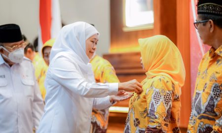 SURABAYA – persbhayangkara.id JAWA TIMUR Gubernur Jawa Timur Khofifah Indar Parawansa saat menyematkan lencana penghargaan pendonor darah sukarela yang ke 75 kali...
