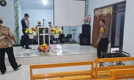 NGANJUK – persbhayangkara.id JAWA TIMUR Polsek Kertosono siagakan personil dan sterilisasi di Gereja Sidang Jemaat Pantekosta Di Indonesia (GPDI) Desa Lambang kuning...