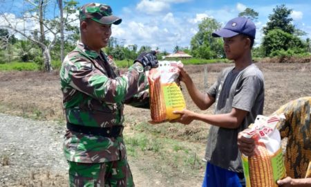 SORONG – persbhayangkara.id PAPUA BARAT memotivator para petani Babinsa Koramil 1802-06/Klamono Sertu Sumanto memberikan bibit jagung kepada Pak Larno merupakan petani,pemberian bibit...
