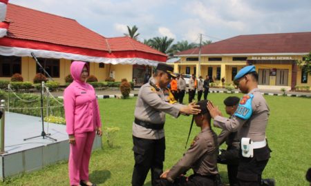 TANJUNG JABUNG TIMUR – persbhayangkara.id JAMBI Kepala Kepolisian Resor Tanjung Jabung Timur Laksanakan Tradisi Penyambutan Bintara Remaja di halaman Mako Polres Tanjab...