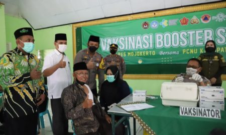 MOJOKERTO – persbhayangkara.id JAWA TIMUR Kapolres Mojokerto AKBP Apip Ginanjar meninjau vaksinasi serentak di aula kantor PC. NU Kab. Mojokerto Jl. RA....