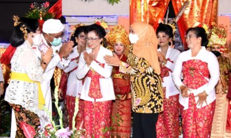 SURABAYA – persbhayangkara.id JAWA TIMUR Gubernur Jawa Timur Khofifah Indar Parawansa saat menghadiri perayaan Dharma Santi Hari Raya Nyepi Tahun Baru Saka...