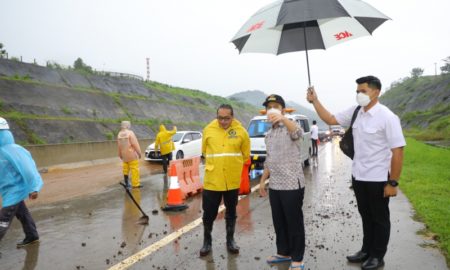 JAWA TIMUR – PERSBHAYANGKARA.ID Wakil Gubernur Jawa Timur Emil Elistianto Dardak meninjau langsung terjadinya longsor di tebing pinggir jalan Tol Pandaan-Malang Km...