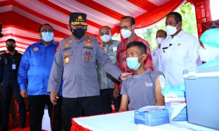 Gelaran 40.345 Dosis Vaksin Serentak di 61 Titik di Jatim Malang Kota- Kapolda Jawa Timur Irjen Pol Nico Afinta bersama Kabinda Jatim...