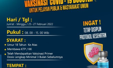 JAMBI – PERSBHAYANGKARA.ID Polda Jambi akan adakan vaksinasi massal booster untuk pelayan publik dan masyarakat umum selama 3 hari yaitu pada Hari...