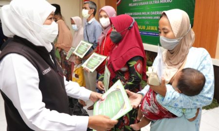 JEMBER – persbhayangkara.id JAWA TIMUR Gubernur Khofifah saat menyerahkan bantuan modal usaha ultra mikro zakat produktif dari Badan Usaha Milik Daerah (BUMD)...