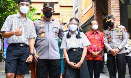 BALI – PERSBHAYANGKARA.ID Kapolri Jenderal Listyo Sigit Prabowo melihat penerapan penegakan protokol kesehatan (prokes) proses Pembelajaran Tatap Muka (PTM) di SMP Kristen...