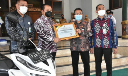 JEMBER – persbhayangkara.id JAWA TIMUR Asisten Pemerintahan dan Kesejahteraan Rakyat Sekda Prov Jatim, Benny Sampirwanto menyerahkan secara simbolis hadiah Paritrana Award Jawa...