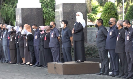 Gubernur Jawa Timur Khofifah Indar Parawansa, memimpin apel pagi di halaman Kantor Gubernur Jatim Jl. Pahlawan 110 Surabaya, Senin (27/12) pagi. Gubernur...