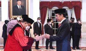 JAKARTA – PERSBHAYANGKARA.ID Presiden Joko Widodo menyaksikan pengucapan sumpah calon hakim konstitusi M. Guntur Hamzah sebagai hakim konstitusi di Istana Negara, Jakarta,...