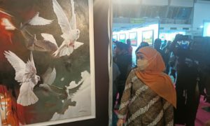 SURABAYA – persbhayangkara.id JAWA TIMUR Gubernur Jawa Timur, Khofifah Indar Parawansa saat mengunjungi salah satu booth karya lukis pada Pasar Seni Lukis...
