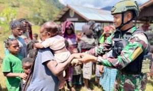 NDUGA – persbhayangkara.id PAPUA Kepedulian untuk berbagi kasih dalam kebersamaan dengan masyarakat di daerah penugasannya, personel Pos Kotis Mbua Satgas Yonif Raider...