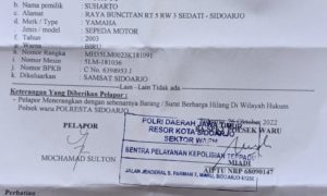 SIDOARJO – persbhayangkara.id JAWA TIMUR Bagi warga masyarakat di area jalan raya Berbek Kecamatan Waru, apabila menemukan STNK Sepeda Motor Jupiter tahun...