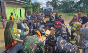 ACEH UTARA – PERSBHAYANGKARA.ID Hari ke empat banjir yang melanda sebagian besar wilayah Kabupaten Aceh Utara, Pangkalan TNI AL Lhokseumawe bersama Kopasgat...