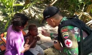 KEEROM – persbhayangkara.id PAPUA Guna mencegah terjadinya gizi buruk diwilayah perbatasan Papua, Tim Kesehatan Satgas Pamtas Yonif 126/KC Pos Karang kelilingi Kampung...