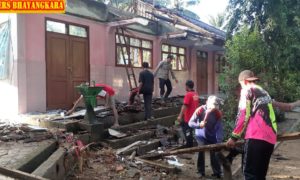 TRENGGALEK – persbhayangkara.id JAWA TIMUR Sejumlah petugas kepolisian bersama warga desa Bendoroto Kecamatan Munjungan melakukan kerja bakti membersihkan puing-puing material bangunan SMP...